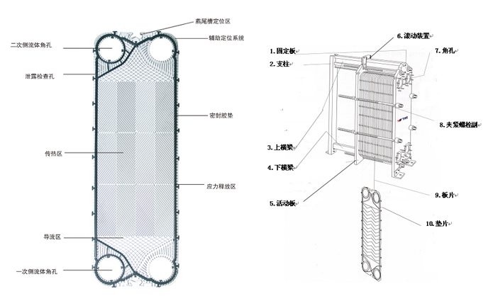 板式換熱器是由框架、傳熱板片組及夾緊螺栓等主要部件組成。